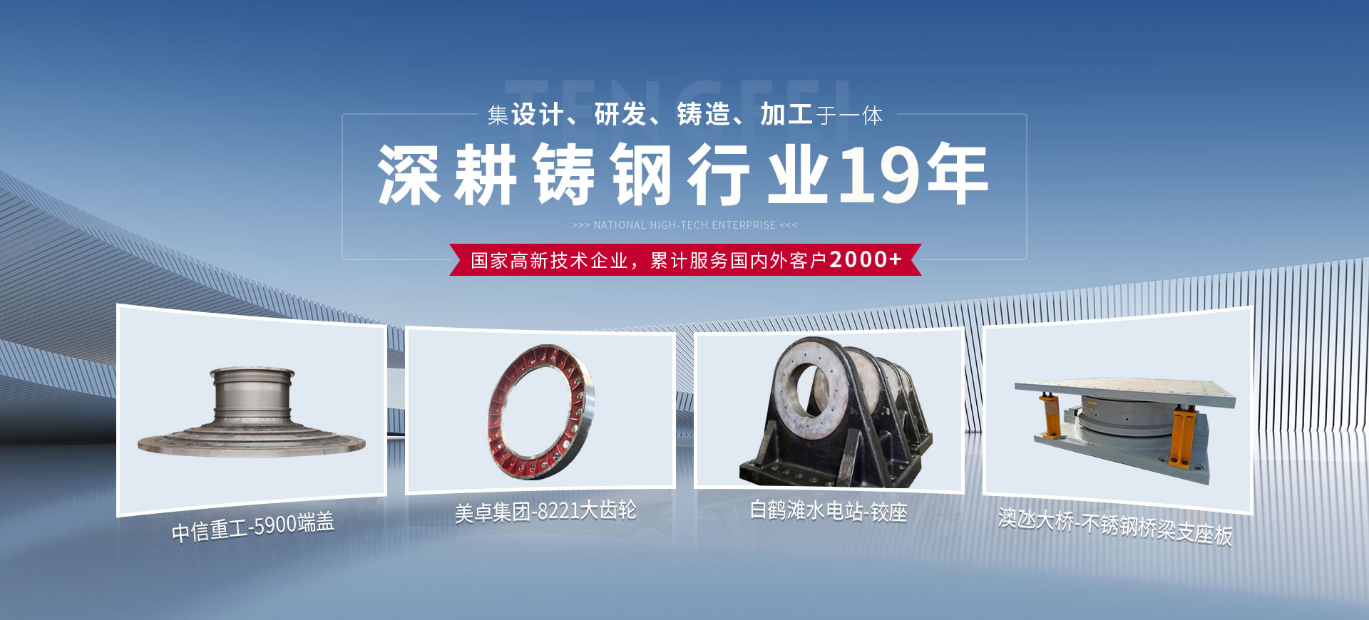 騰飛鑄鋼成立于2006年,位于全國鑄造基地河南省新鄉市,擁有員工300余人,是一家從事150噸以下碳鋼、低合金鋼、不銹鋼鑄鋼件研發(fā)、制造、服務為一體的國家高新技術企業(yè)。  公司通過了ISO9001國際質量管理體系認證,擁有2項發(fā)明專 利,2項河南省科技成果、25項實用新型技術,通過了“環(huán)保績效評級B級企業(yè)”驗收,先后榮獲“河南省鑄造行業(yè)綠色發(fā)展企業(yè)”、 “河南省科技型中小企業(yè)”、“河南省專精特新中小企業(yè)”等榮譽稱號。  公司擁有2臺25噸電爐,4臺大型天燃氣熱處理爐、10米回旋自動拋丸機一臺, φ8m數控立車、φ10m數控滾齒機等各類高精裝備100余臺套,年產能3萬余噸,能為客戶提供從產品設計、木模加工、大型鑄造、大型加工一站式服務,產品廣泛應用于建材、冶金、鍛壓、冶金、水工、路橋、化工等多個重型行業(yè)。  長期服務于中信重工、中船重工、美卓、上海中交、萊歇、寶武、濟南重工等全球知名企業(yè),在行業(yè)內擁有較高的市場知名度和美譽度。